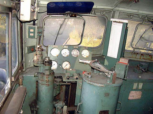 運転室内は外観に比べて随分と綺麗な状態を保っているようです。突き出た計器板が元大窓機であったことを物語ります。