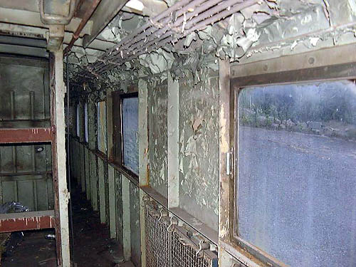 これは前位側から機械室廊下を見たものだと思われます。はげ落ちたペンキ?が何とも悲惨…。