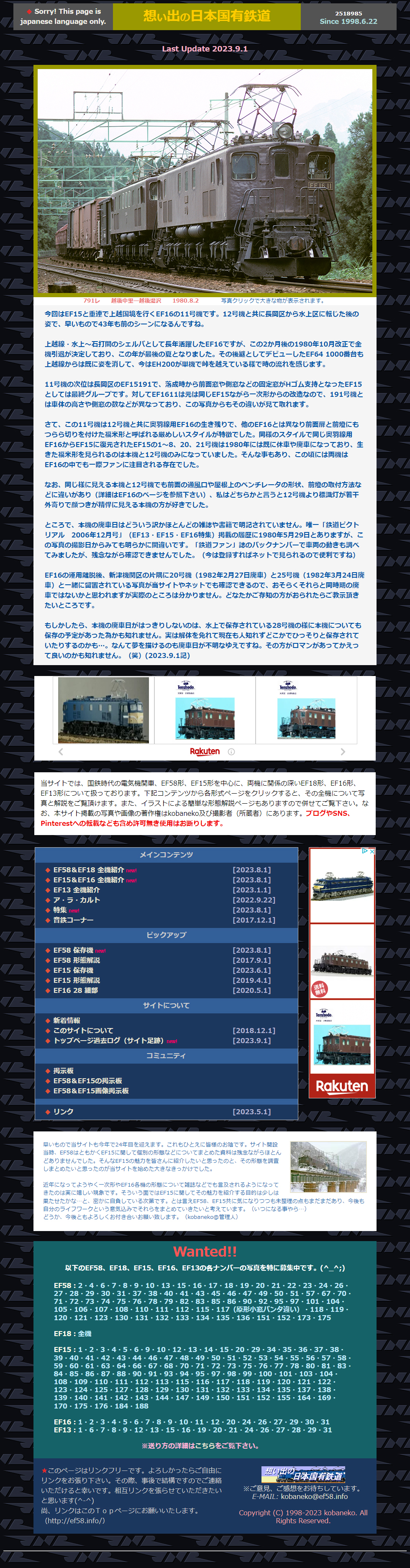 9/4の更新でEF58全機掲載達成!
