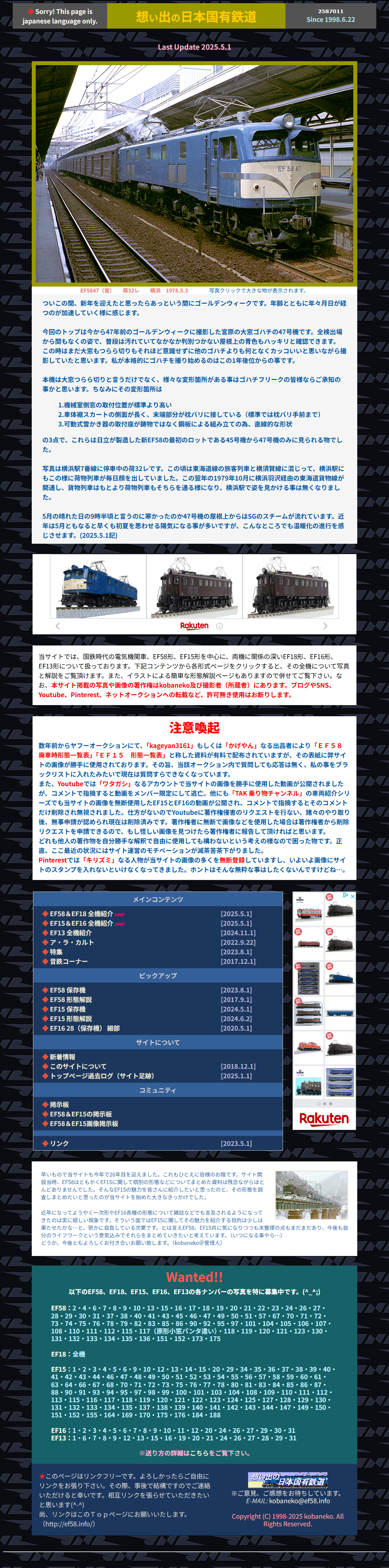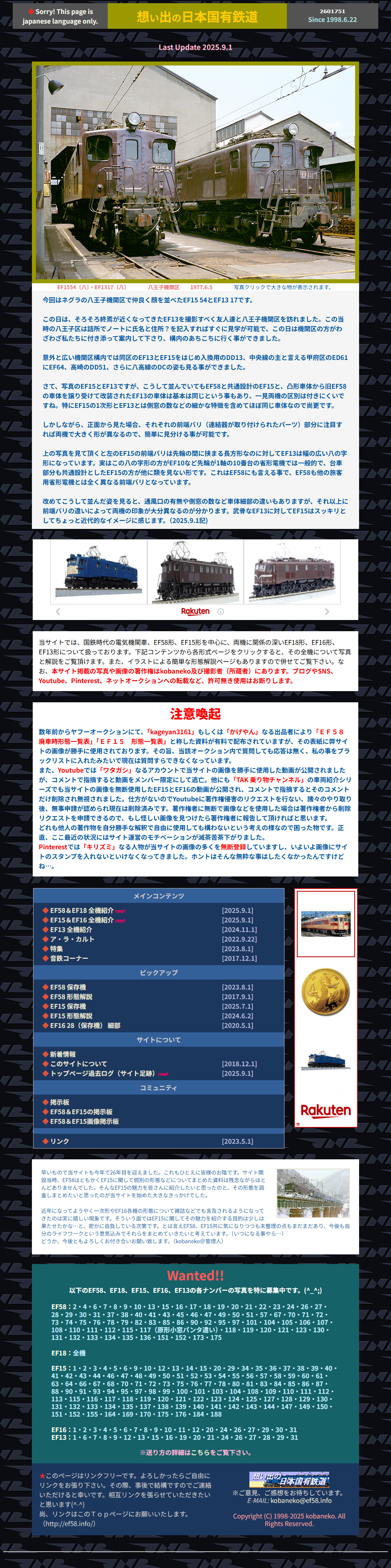 4月1日の更新でEF58、EF15、EF13の各ページのフレームを廃止。 |